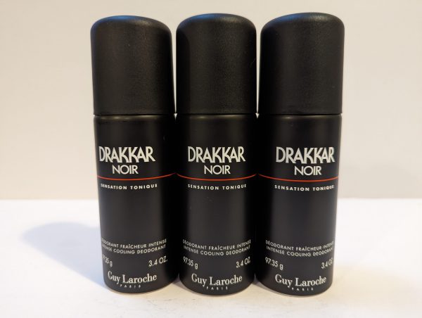 3x Guy Laroche Drakkar Noir Deodorant 3.4oz, Cooling Deodorant Spray, Sensation Tonique